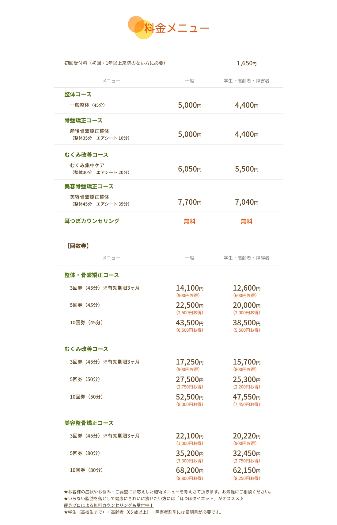 整体メニュー・料金
